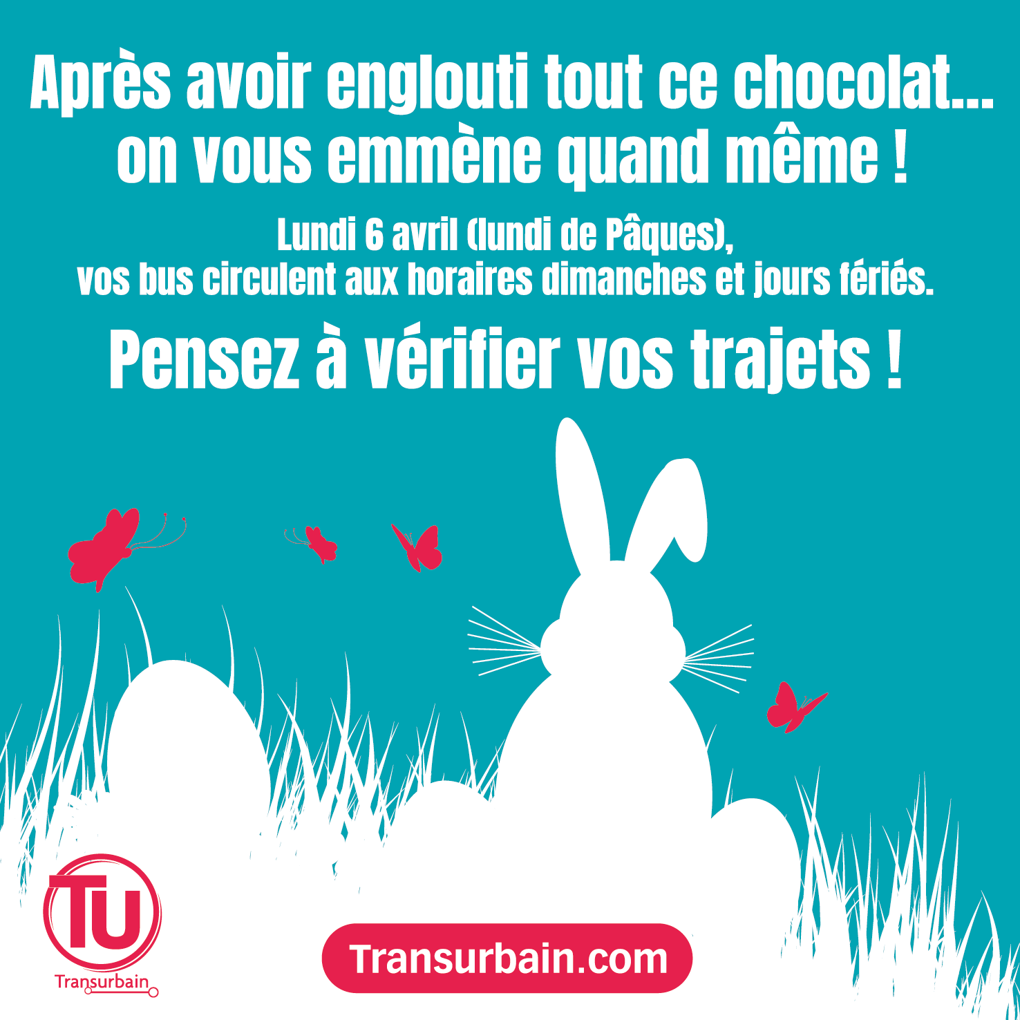 Lundi 6 avril (lundi de Pâques), vos bus circulent aux horaires dimanches et jours fériés !